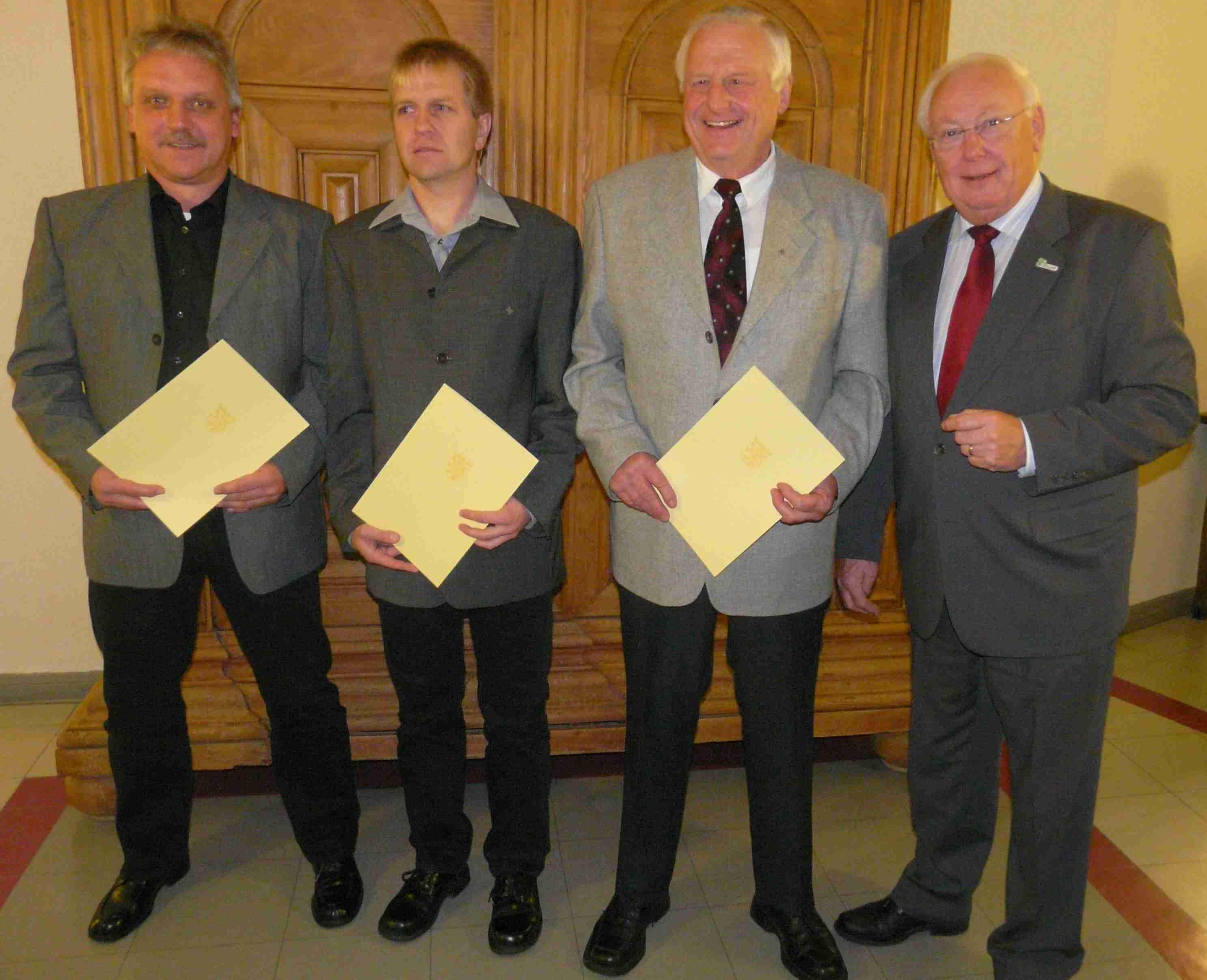 Von Links: Edgar Ihrig, Willy Schwarz, Walter Wissmann und Landrat Horst Schnur.