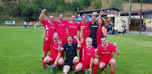 Im ersten Spiel bei hochsommerlichen Temperaturen wartete die AH Vertretung der SpVgg Kinzigtal, die ohne Ersatzspieler den Weg nach Gammelsbach angetreten hatte. Nach ausgeglichenem Beginn konnte sich die SG im Laufe der Begegnung die Spielkontrolle sichern und durch einen Hattrick von Christoph Haag stand am Ende ein 3:0 Erfolg. Im zweiten Spiel gegen den SV Eberbach war die SG auch das etwas bessere Team, haderte aber mit den Torabschlüssen. Trotz einiger guter Möglichkeiten konnte man keinen Treffer erzielen und sich mit einem 0:0 begnügen. Mit dem TV Hetzbach wartete das spielerisch wohl beste Team des Turniers zum Abschluss der Vorrundengruppe. Die SG meisterte diese Hürde aber mit einer taktischen Glanzleistung und einer fast einhundertprozentigen Chancenverwertung. Maic Ihrig (2) und Christoph Haag trafen beim 3:1 Erfolg für die SG. Durch diesen Sieg konnte man die Hetzbacher in der Tabelle noch abfangen und als Gruppensieger ins Finale gegen den VfB Eberbach einziehen. Dort gelangen wiederum Maic Ihrig und Christoph Haag die Treffer zu einer 2:0 Führung. Jedoch kam der VfB nochmals heran und erzielte mit dem Schlusspfiff den Ausgleichstreffer zum 2:2, so dass die Entscheidung um den Turniersieg im 9-Meter-Schießen fallen musste. Hier hatte die SG die besseren Nerven. Timo Tischler, Mirco Dörsam, Steffen Friedrich und Christoph Haag verwandelten ihre Schüsse, während die Eberbacher einmal verschossen und einmal an Ronnie Funke scheiterten. Die SG konnte sich damit für den Gammelsbacher Turniersieg in Hiltersklingen revanchieren und bedankt sich beim SVG für die Ausrichtung des, wieder einmal sehr tollen, AH-Turniers.