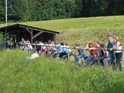 Mit einer gemischten D- und E-Jugend Mannschaft sowie einer Trainingsgruppe besuchten uns die Fußballer unseres holländisches Partnervereins FC Binnenmaas vom 22.-24.05 in Hiltersklingen. Nach der Begrüßung unserer Gäste, die um 14 Uhr anreisten, bezogen diese ihre Quartiere. Die Jugendspieler und ihre Betreuer blieben im Sportlerheim, während die restlichen Erwachsenen in den Hotels "Zentlinde" und "Schönblick", sowie in der "Schmelz" unterkamen. Um 16.30 Uhr trafen sich die Nachwuchskicker des FC Binnenmaas mit Spielern unserer D- und E-Jugend zu einem gemeinsamen Training, welches unter der Leitung von Rainer Acker-Kessler und Mathias Weber stand. Ab 19 Uhr standen sich dann die Trainingsgruppe des FC Binnenmaas und eine Auswahl heimischer Kicker auf Kleinfeld gegenüber. Diese Partie endete nach 2x35 Minuten 2:2 Unentschieden. Die Tore für die SGM erzielten Mathias Weber (44.) und Daniel Ihrig (54.). Für Binnenmaas trafen Marco Walraven (12.) und Martin Inveld (70.). Im anschließenden Neunmeterschießen unterlag die SG, die mit Christoph Reeg, Lothar Sauer, Mirco Dörsam, Daniel Ihrig, Mario Dick, Ronald Funke, Mathias Weber, Kalli Wolf, Simon Kumpf, Risto Klepov und Nils Skamaj angetreten waren, mit 6:7. Als Schiedsrichter fungierte Alexander Schmidt.