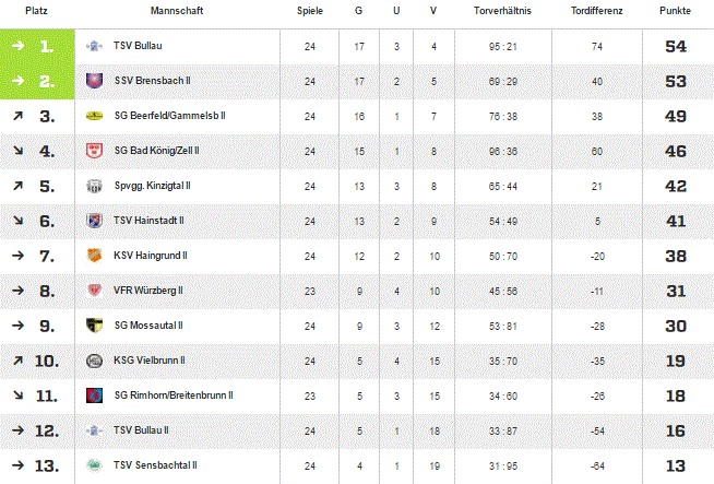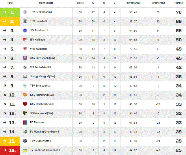 Abschluss-Tabelle B-Liga Odenwald Saison 2016/17