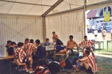 Am nächsten Morgen fuhren wir an den Sportplatz um die Gruppenspiele zu bestreiten. Im ersten Spiel trafen wir auf den Gastgeber Burmath ( Frankreich), gegen die wir 1:0 gewannen. Nach einer kleinen Pause mussten wir gegen Friesdorf ( Deutschland) eine knappe