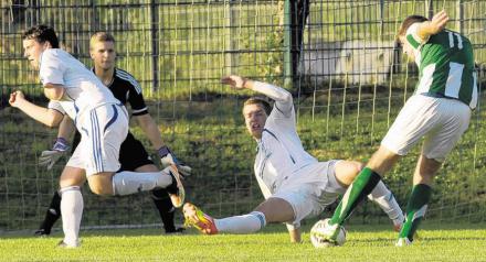 von der SG das Heimdebakel des B-Ligisten. Tore: Felix Rug (28., 30., 50.,