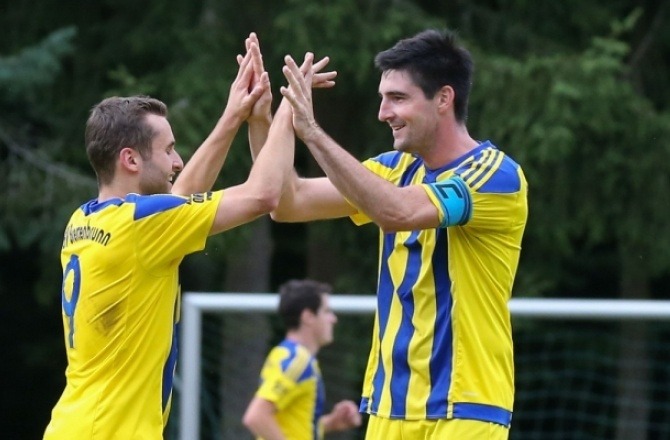 präsentierten: Spielertrainer Kevin Ihrig (75., Foulelfmeter) und Jörg